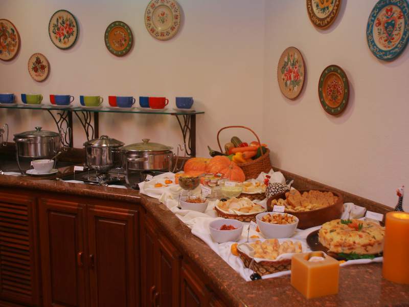 O Restaurante, muito acolhedor, oferece delicioso Café da Manhã Colonial já incluso na diária das 08:00h às 11:30h e opções A La Carte diferenciadas para o Jantar.